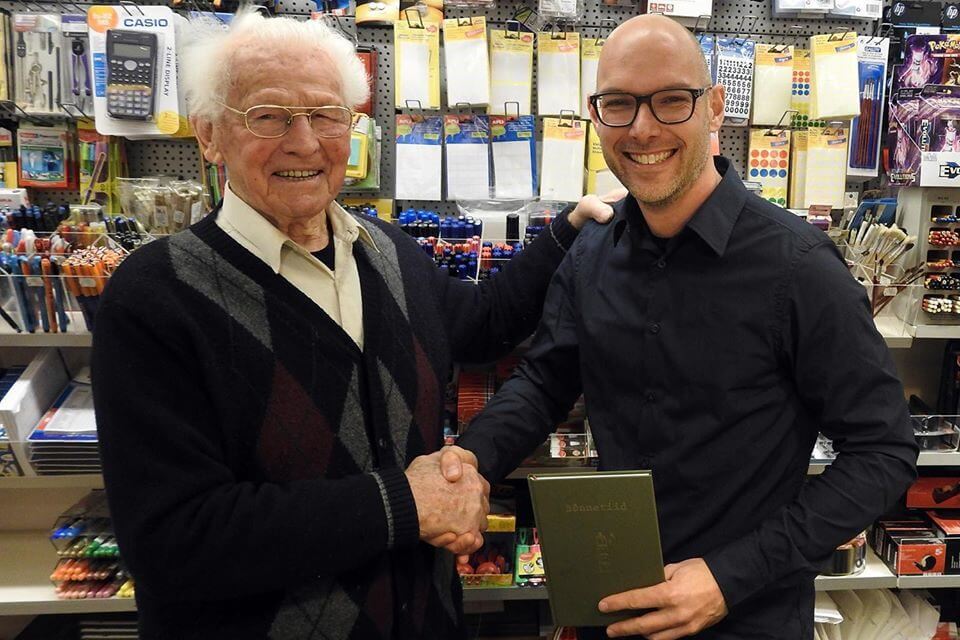 Onlangs overhandigde Michiel Funke in zijn volgepakte boekenwinkel in de Boomstraat op West het eerste exemplaar van de dichtbundel ‘Bônnetiid’ aan de 97-jarige auteur Piet Kaspers. Hoe het allemaal zover is gekomen kunt u lezen in ‘de Terschellinger ‘ van 14 december 2017.
