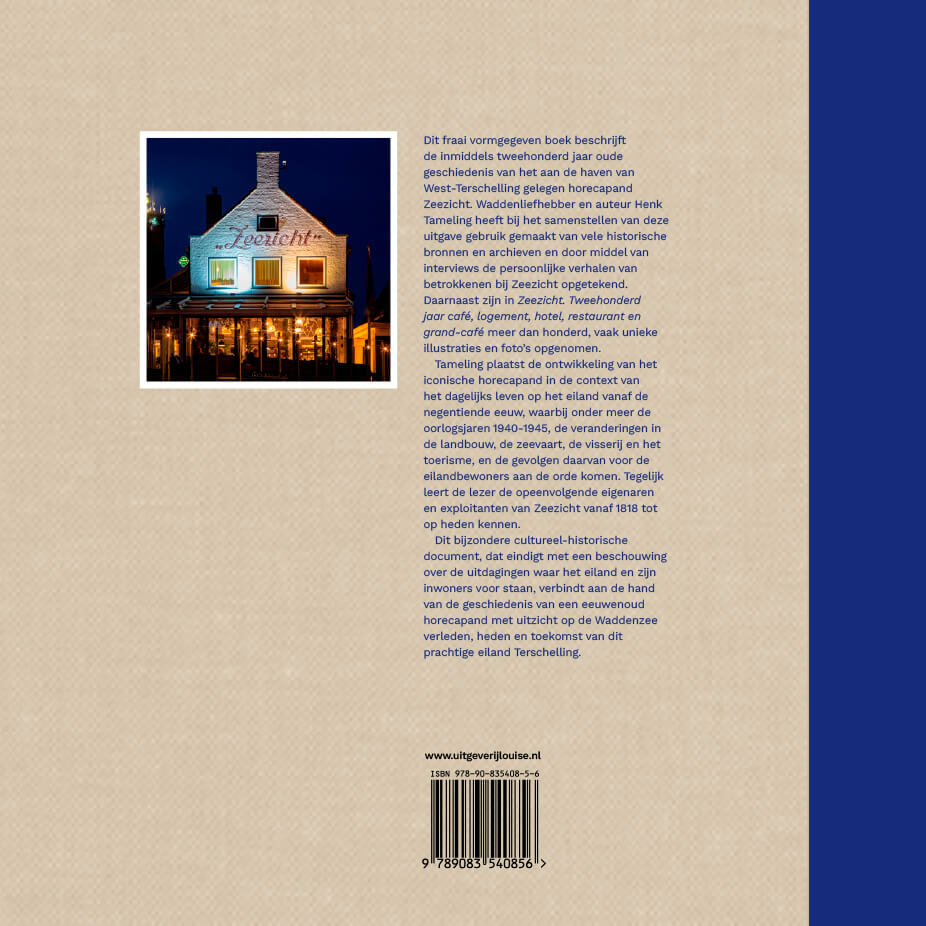 Dit fraai vormgegeven boek beschrijft de inmiddels tweehonderd jaar oude geschiedenis van het aan de haven van West-Terschelling gelegen horecapand Zeezicht. Waddenliefhebber en auteur Henk Tameling heeft bij het samenstellen van deze uitgave gebruik gemaakt van vele historische bronnen en archieven en door middel van interviews de persoonlijke verhalen van betrokkenen bij Zeezicht opgetekend.